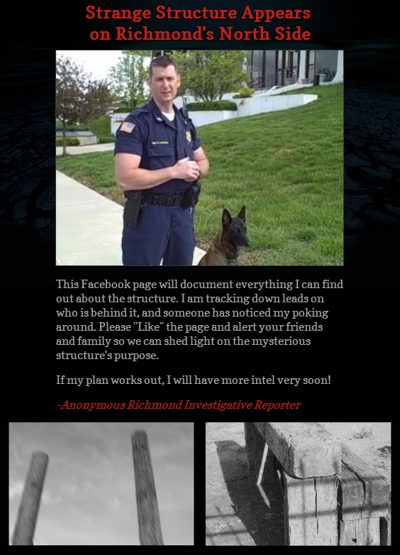A Facebook page popped up this week with a video that has people wondering. Called, simply, “North Side Mystery Structure,” the link has been shared by several Richmond residents.